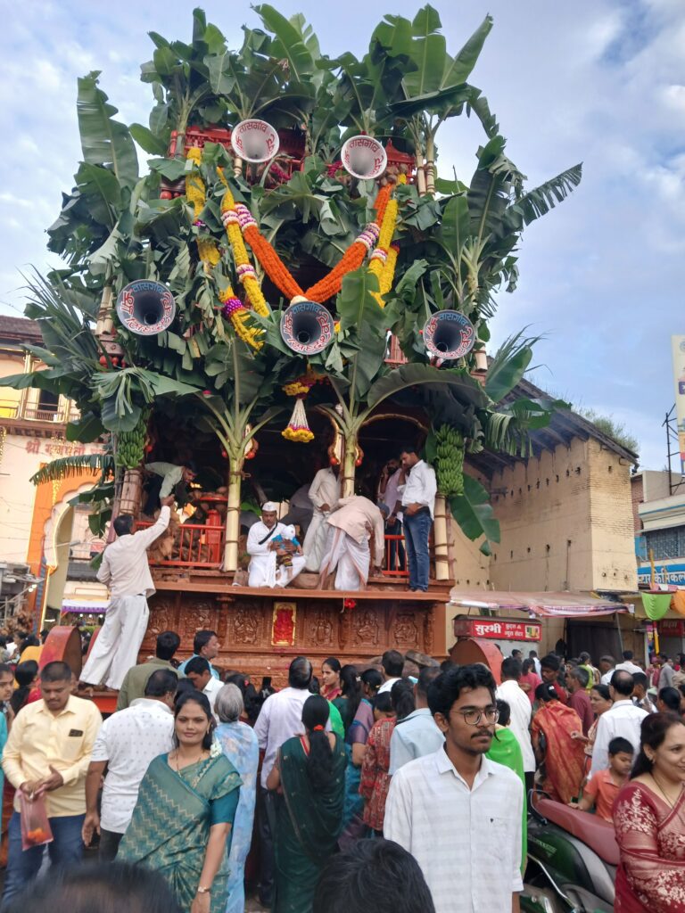 आज पहाटेपासूनच ” श्रींच्या दर्शनासाठी शहरासह परिसरातील आबाल वृद्धांसह माता-भगिनींनी, तरुणांनी दर्शनासाठी लांबच्या लांब रांगा लावलेल्या दिसत होत्या. तर चालू वेळी पाऊस पाणी बऱ्यापैकी असल्यामुळे सर्वत्र उत्साहाचे व चैतन्याचे वातावरण निर्माण झाले होते चालू रथोत्सवासाठी मेवा मिठाईचे, चायनीज, भेळपुरी, पाणीपुरी खाऊचे यासह लहान मुलांच्या खेळणीची, सौंदर्य प्रसाधनाची, प्लास्टिक फुलांचे सजावटीचे स्टॉल्सनी गुरुवार पेठ, जोशी गल्ली, फुलून गेली होती चालू वर्षीच्या रथोत्सवासाठी गर्दी ही मोठ्या प्रमाणात होती.